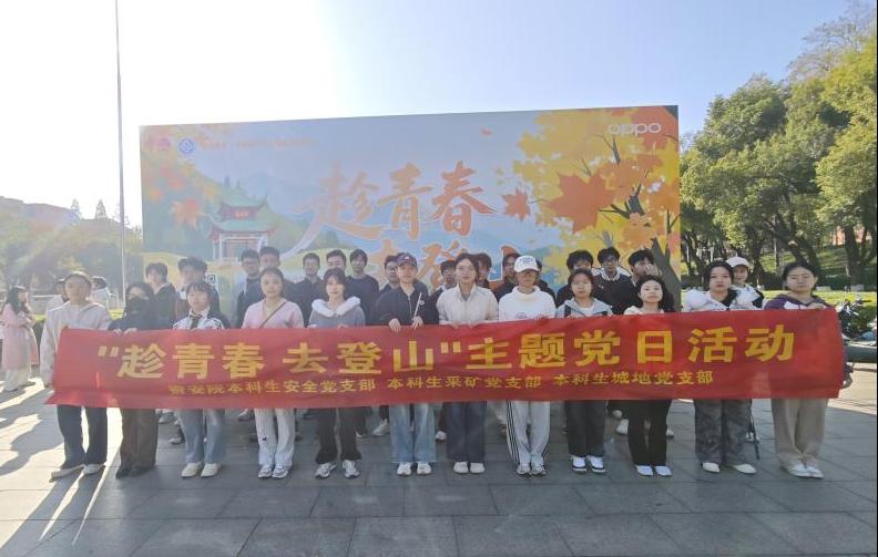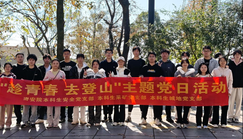 沐浴红色光辉,凝聚奋进力量,2025年11月29日,本科生安全党支部、本科生城地党支部和本科生采矿党支部组织全体党员赴岳麓山开展“攀登岳麓承星火,励志青春续新程”主题党日活动。
