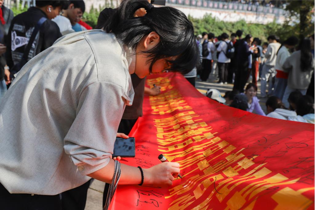 本次活动以“走下网络、走出寝室、走向自然”为导向,将登山运动与思政教育深度融合,打造了“移动的思政课堂”。活动伊始,在采矿楼前坪的红色宣讲环节中,院团委书记丁德孝以“胸怀矿业天下,担当时代使命”为主题,结合学院专业特色,鼓励青年学子在国家建设与发展的潮流中勇担先锋,将个人理想融入国家发展大局;研究生学生会执行主席秦文倩在国旗台前,围绕“国安铸盾,十载铭心”展开宣讲,号召同学们以实际行动守护国家安全,为民族复兴贡献青春力量。