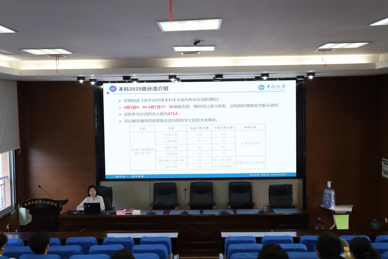 为助力轨道交通基础设施与安全类2025级学生厘清专业选择思路、做好分流规划,4月1日下午,学院“倾听·成长”茶叙会(第11期)在岳麓山校区采矿楼T302顺利举办。学院安全系王秉教授、城地系刘科伟教授应邀作专业分享,辅导员黄佳星作分流工作专题汇报,轨安2025级学生代表参加活动。现场问答踊跃、交流氛围浓厚。